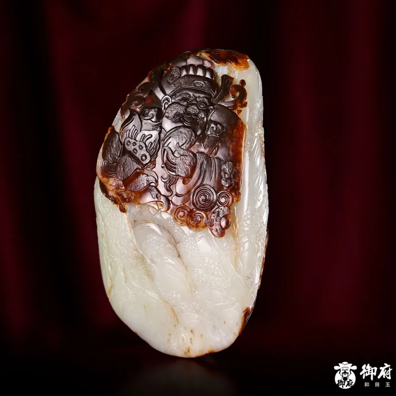 新疆羊脂白籽料玉牌《财神御龙》:神工天巧现,财兴福运长,龙腾盛世启,宝蕴万年传