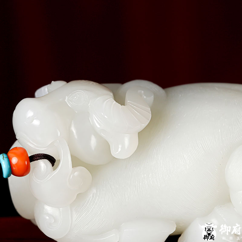 作品通过写实的手法,将牛的力量与和田玉的温润完美结合,传达出一种积极向上的精神力量。