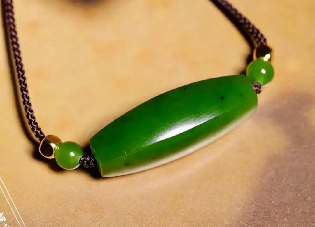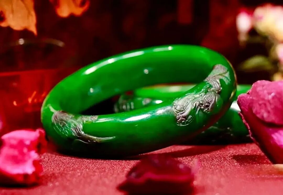 玉质方面更是七号坑碧玉的象征,无论玉色还是细度,都是碧玉的绝对顶点,可以说是真正的饰品级和田玉了。