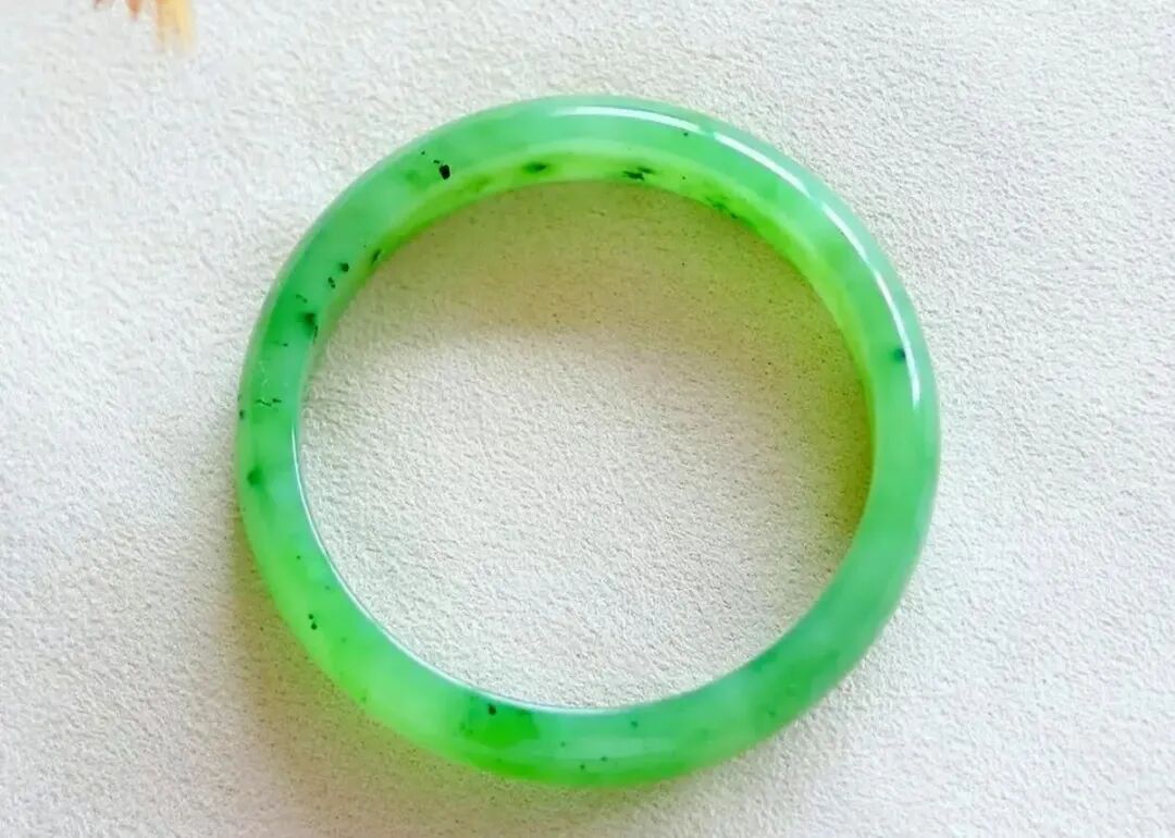 七号坑碧玉也不是没有黑点,但它的黑点却很特别。不但色度重而且连成一片,仔细观察表面还会微微发红。