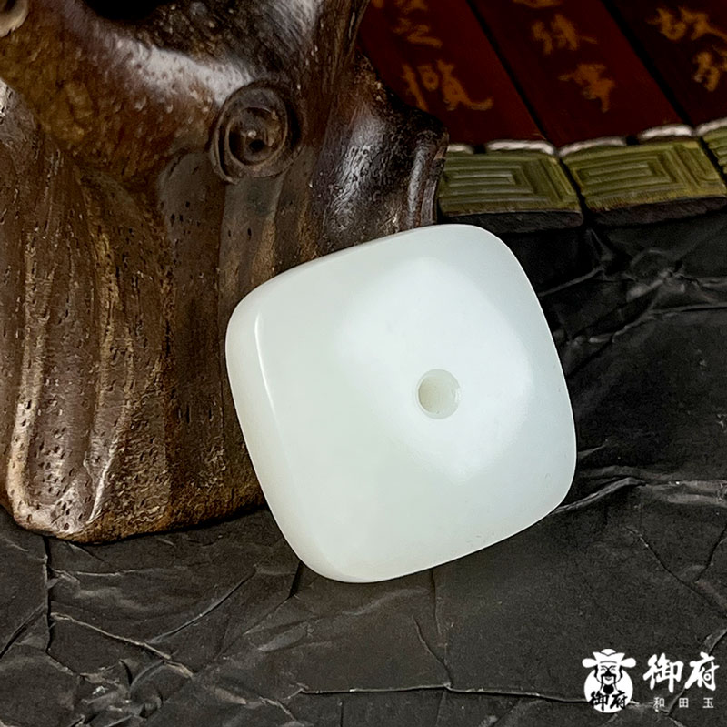 重量:18.2 克 颜色: 白玉 题材: 平安扣 尺寸:长26mm宽26mm厚12mm