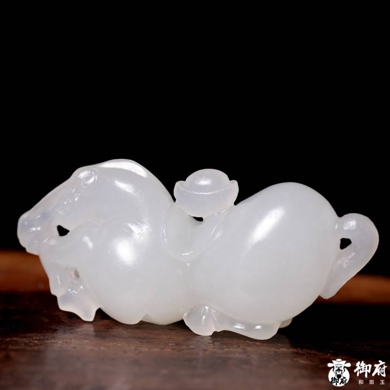 新疆和田玉原毛孔皮白玉 挂件 马到财来 11.3克