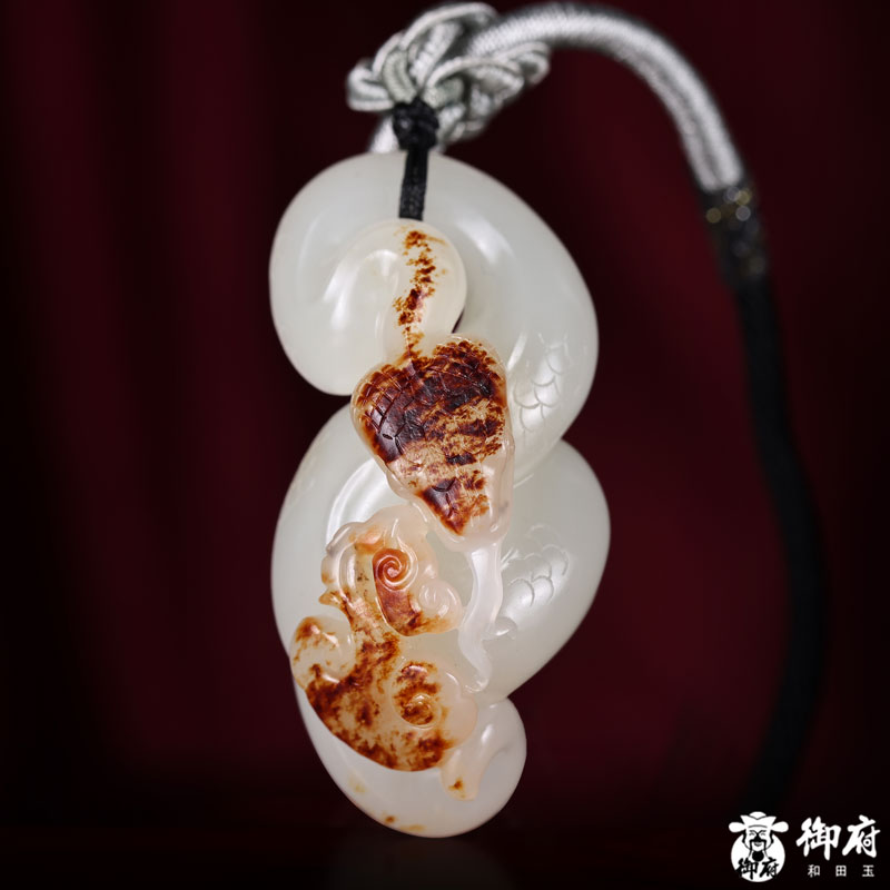 新疆和田玉籽料红皮白玉挂件 灵蛇献瑞 35.5克