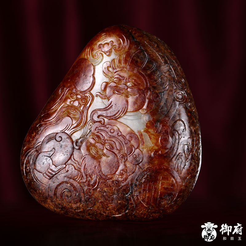 新疆和田玉红皮白玉独籽摆件 福禄寿喜 286克