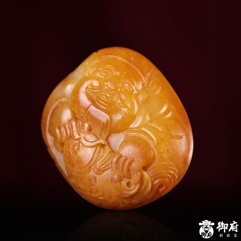 新疆和田玉黄沁籽料白肉挂件 财神有余 11.8克