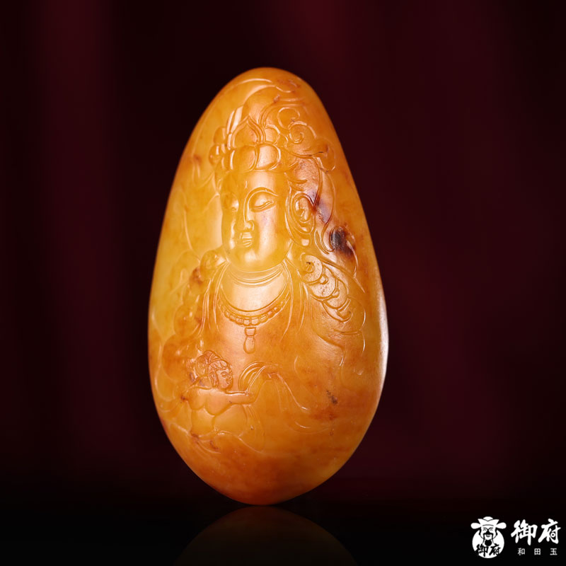 新疆和田玉黄沁籽玉挂件 观音 28.5克