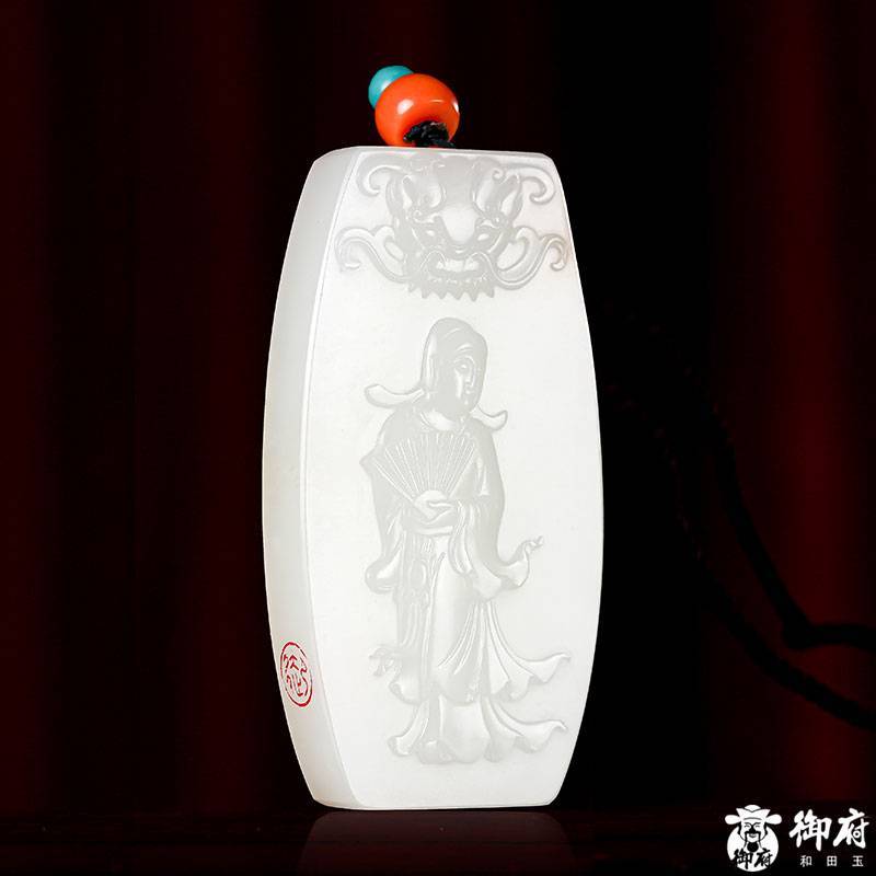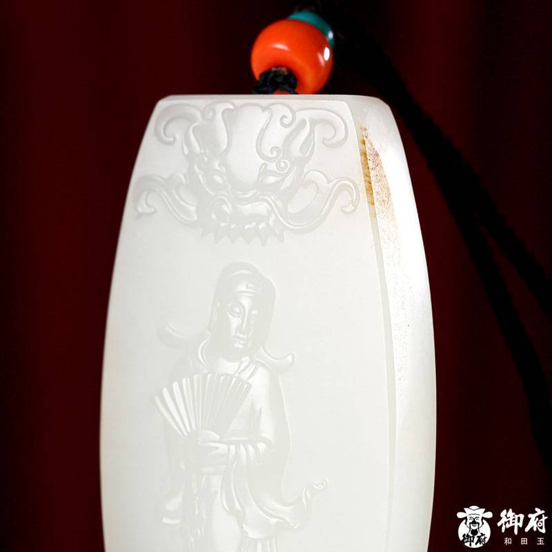 《才貌双全》为新疆和田玉白玉籽玉作品,质地细腻缜密,油润顺滑,精光内蕴,莹亮光泽,温婉柔和。